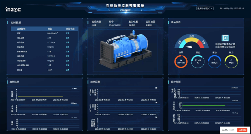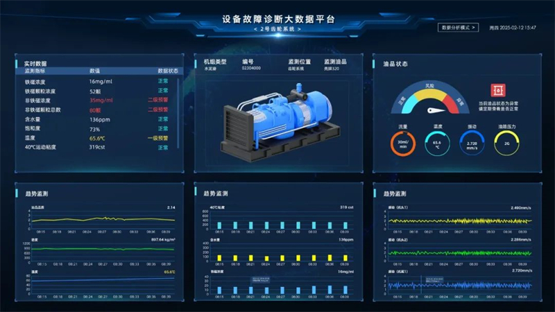 一眼直觀了解設(shè)備波動(dòng)狀態(tài),自動(dòng)標(biāo)記異常趨勢(shì)(如油液粘度下降、金屬顆粒突增),識(shí)別早期磨損(如軸承點(diǎn)蝕初期),較傳統(tǒng)檢測(cè)提前1-3個(gè)月預(yù)警潛在故障。